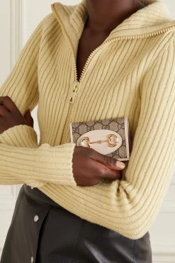 GUCCI Horsebit 1955 Bedrucktes Portemonnaie Aus Beschichtetem Canvas Mit Lederbesätzen ,Beige