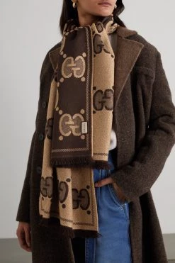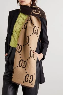 GUCCI + The North Face Schal Aus Wolle In Zopfstrick Mit Applikation Und Fransen ,Schwarz
