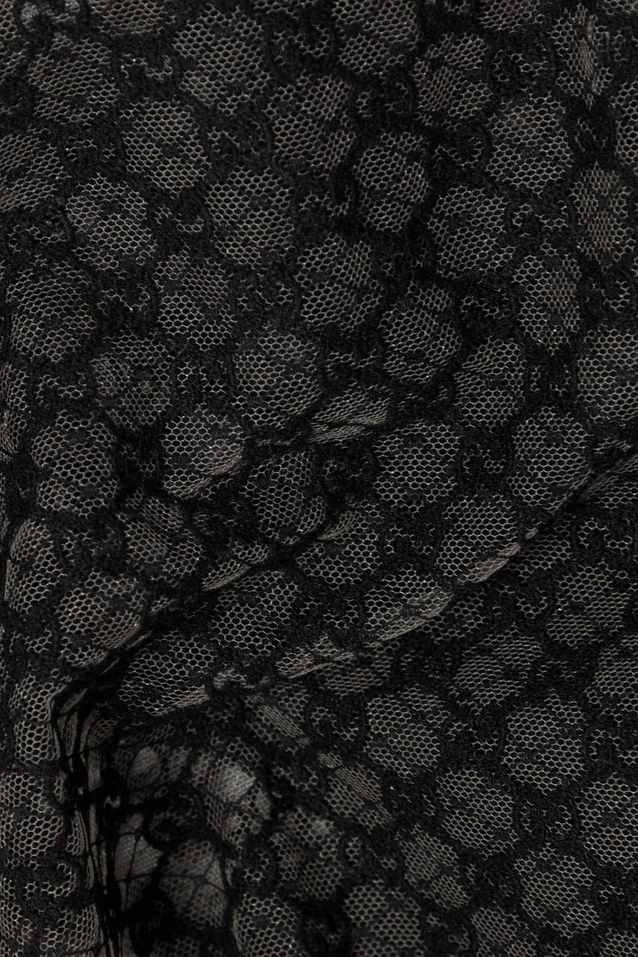 Dieser Midirock von Gucci wurde auf dem Resort-Laufsteg 2022 mit dem dazugehörigen Bustier und einem Harnischgürtel zu einem eindrucksvollen Outfit kombiniert. Zu Ehren ihres 100-jährigen Bestehens griff die Marke glamouröse, sinnliche Looks aus dem Archiv auf und gestaltete diesen Rock aus Tüll, der mit dem ikonischen „GG“-Muster bestickt ist, daher mit Spitzenbesätzen und korsettartigen, verstärkten Satinpartien. Dank des mitgelieferten Unterrocks können Sie selbst entscheiden, ob Haut durchscheinen soll.