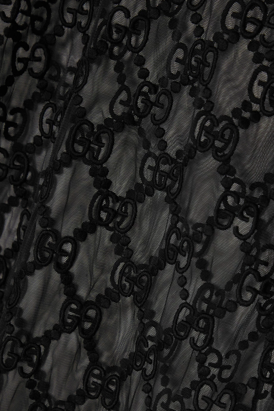 Alessandro Michele findet immer wieder neue Arten, mit dem „GG“-Logo der Marke zu spielen – bei diesem Oberteil zeigt es sich als leicht erhabene Stickerei. Das Modell wurde in Italien aus Tüll aus einer Baumwollmischung mit Stretch-Anteil gefertigt und ist recht durchscheinend, weshalb Sie einen Triangel-BH oder ein Top darunterziehen sollten.