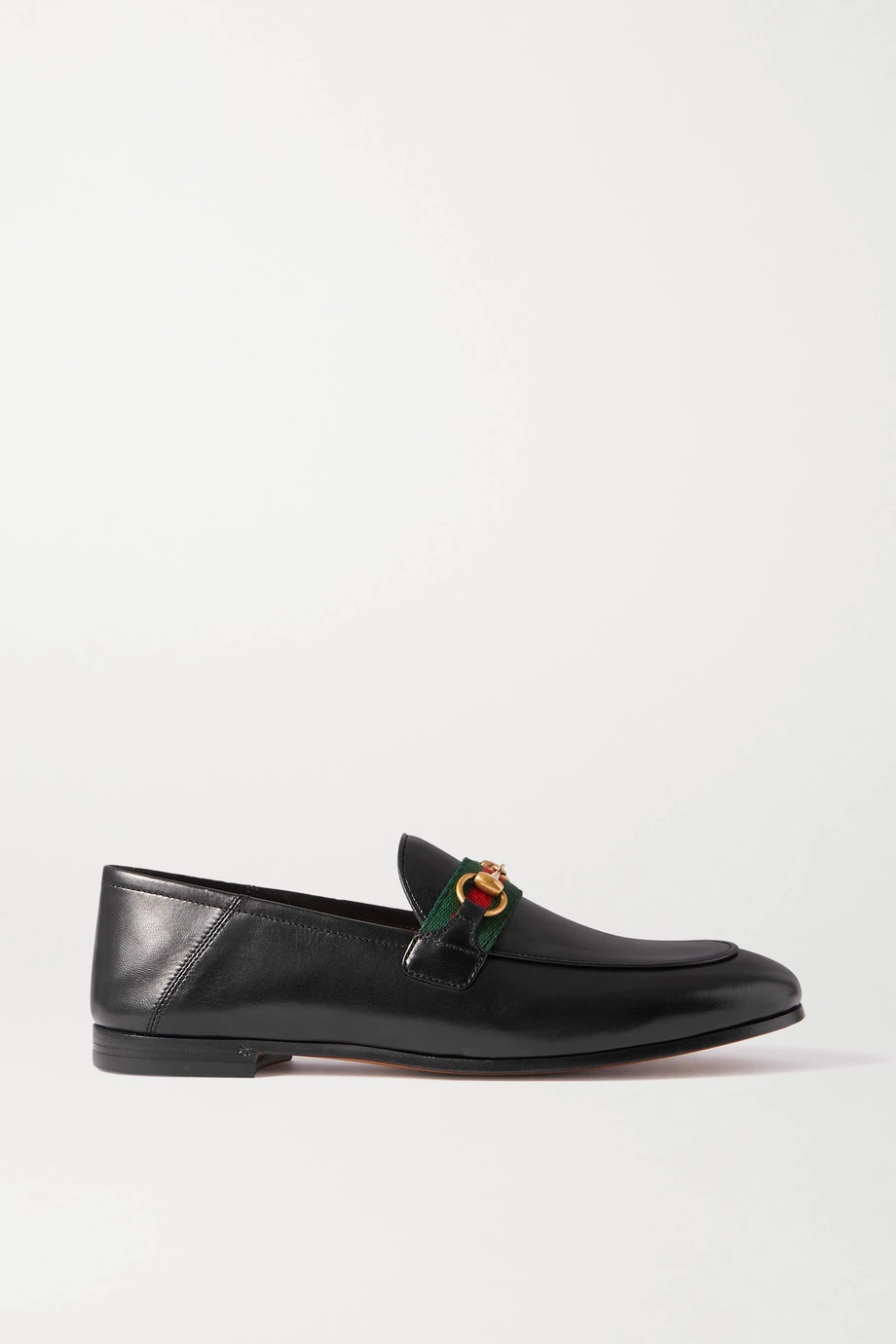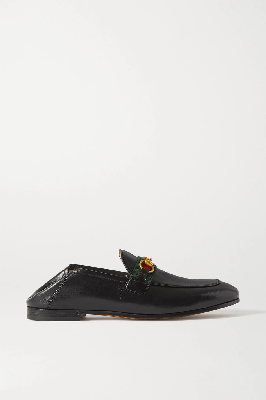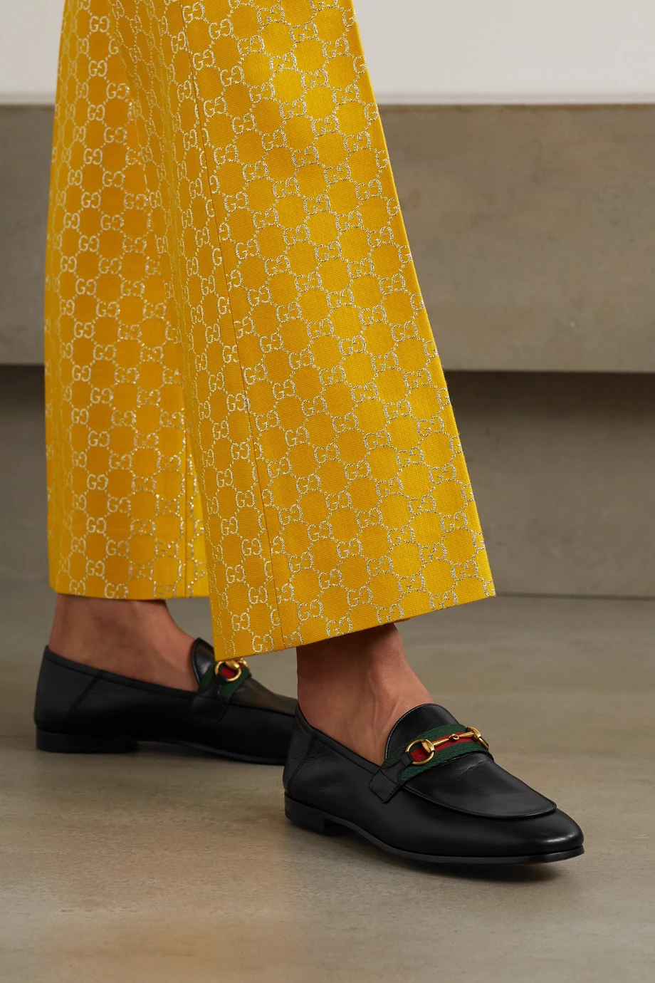 Diese Variante der „Brixton“ Loafers von Gucci zeigt sich mit den beliebtesten und bekanntesten Markenzeichen des Hauses: dem gestreiften Webband und dem goldglänzenden „Horsebit“-Detail. Zudem wurde das in Italien gefertigte Modell aus geschmeidigem Leder mit einem flachen Absatz und einer einklappbaren Fersenpartie ausgestattet, damit Sie es auch als Slippers einsetzen können.