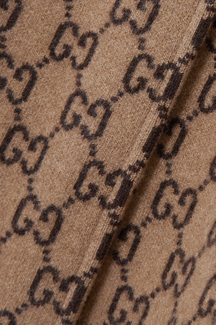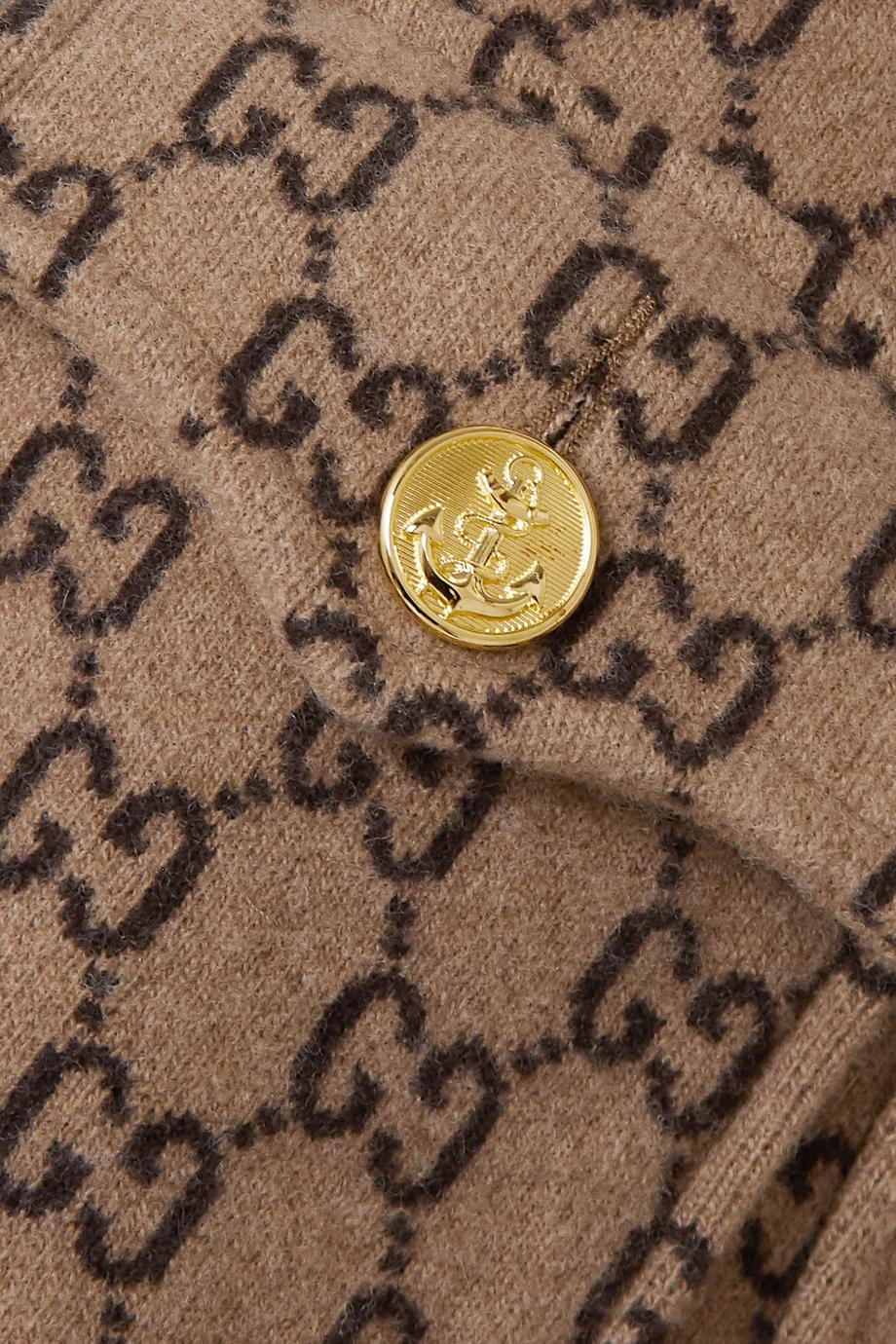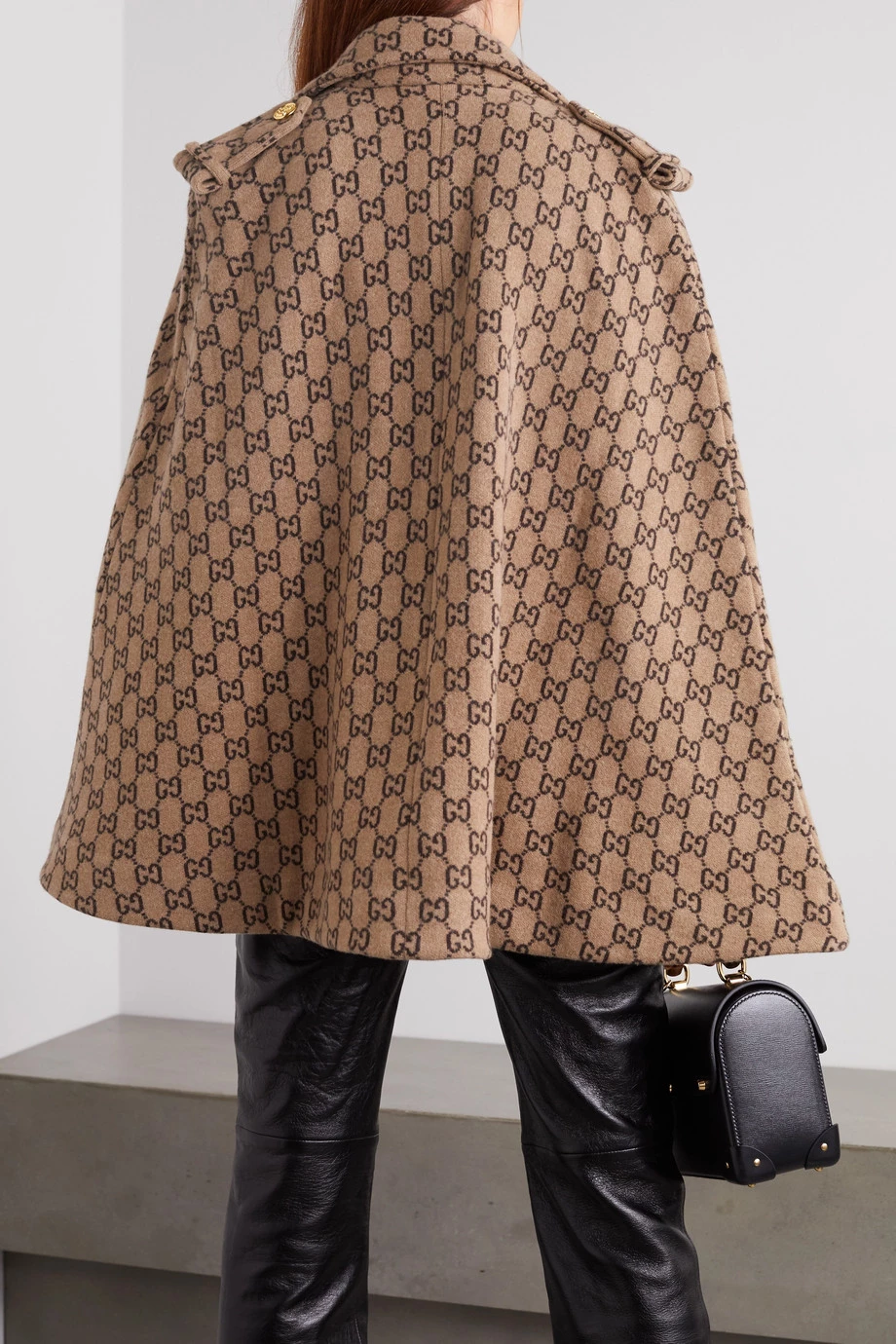 Alessandro Michele lässt gerne Elemente aus dem Archiv von Gucci in neue Designs einfließen – beispielsweise wurde dieses Cape mit dem ikonischen „GG“-Monogramm versehen. Das Modell aus haptisch ansprechendem Woll-Jacquard zeigt sich mit goldfarbenen Retro-Knöpfen, in die jeweils ein Anker geprägt ist.
