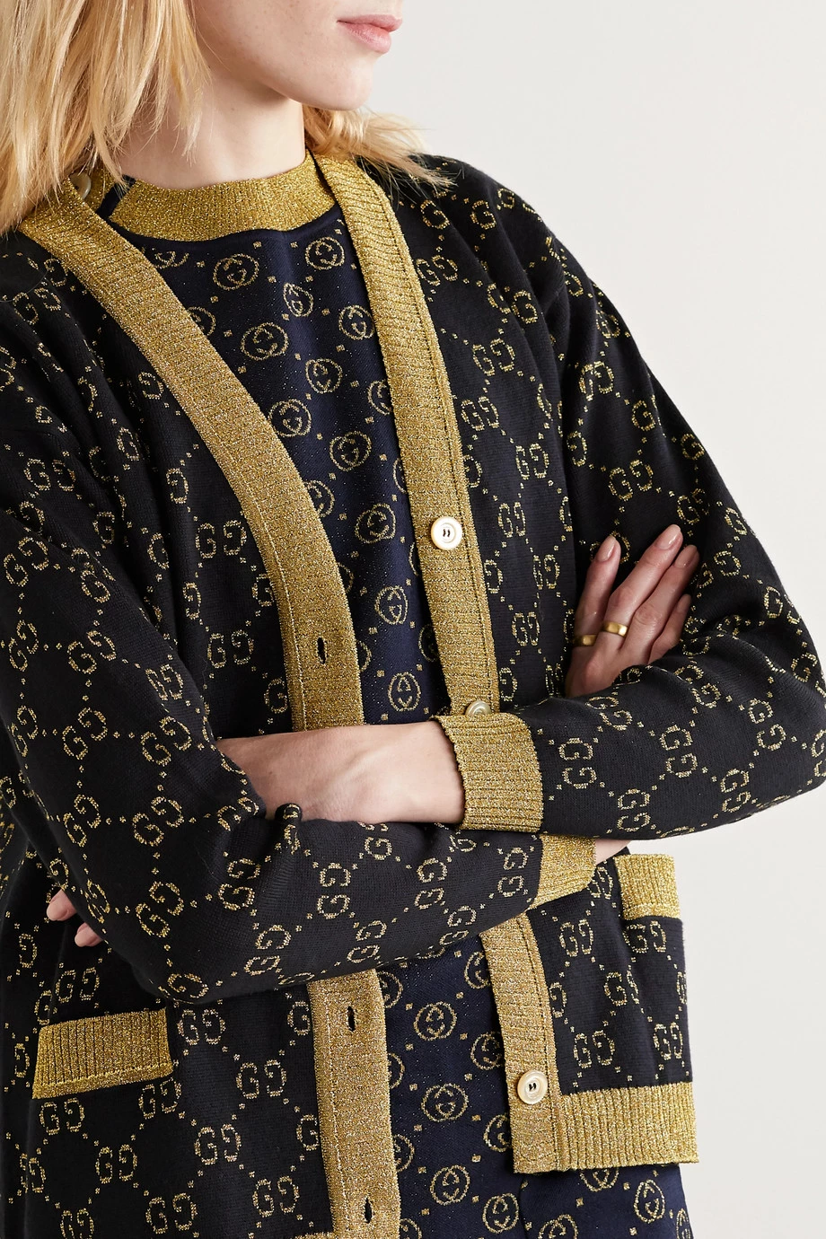 Dieser Cardigan von Gucci zeigt sich über und über mit dem „GG“-Logo – das wohl bekannteste Emblem des Hauses. Das leicht lockere Modell aus Jacquard-Strick wurde in Italien aus einer weichen Baumwollmischung gefertigt und hat goldfarbene Abschlüsse sowie Knöpfe aus Perlmutt – schließen Sie diese, um einen tiefen Ausschnitt zu kreieren oder lassen Sie sie offen und ziehen Sie das passende Oberteil darunter.