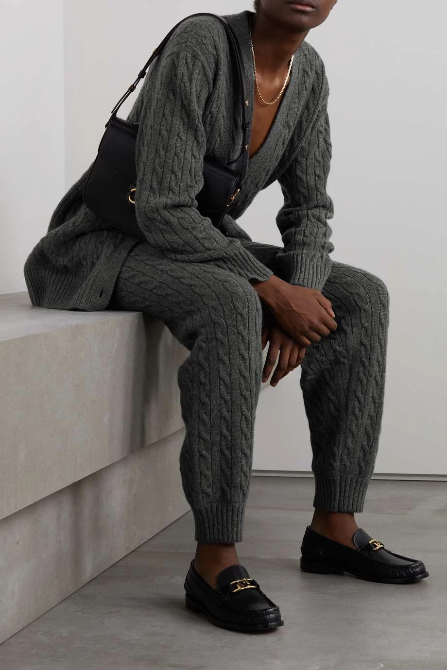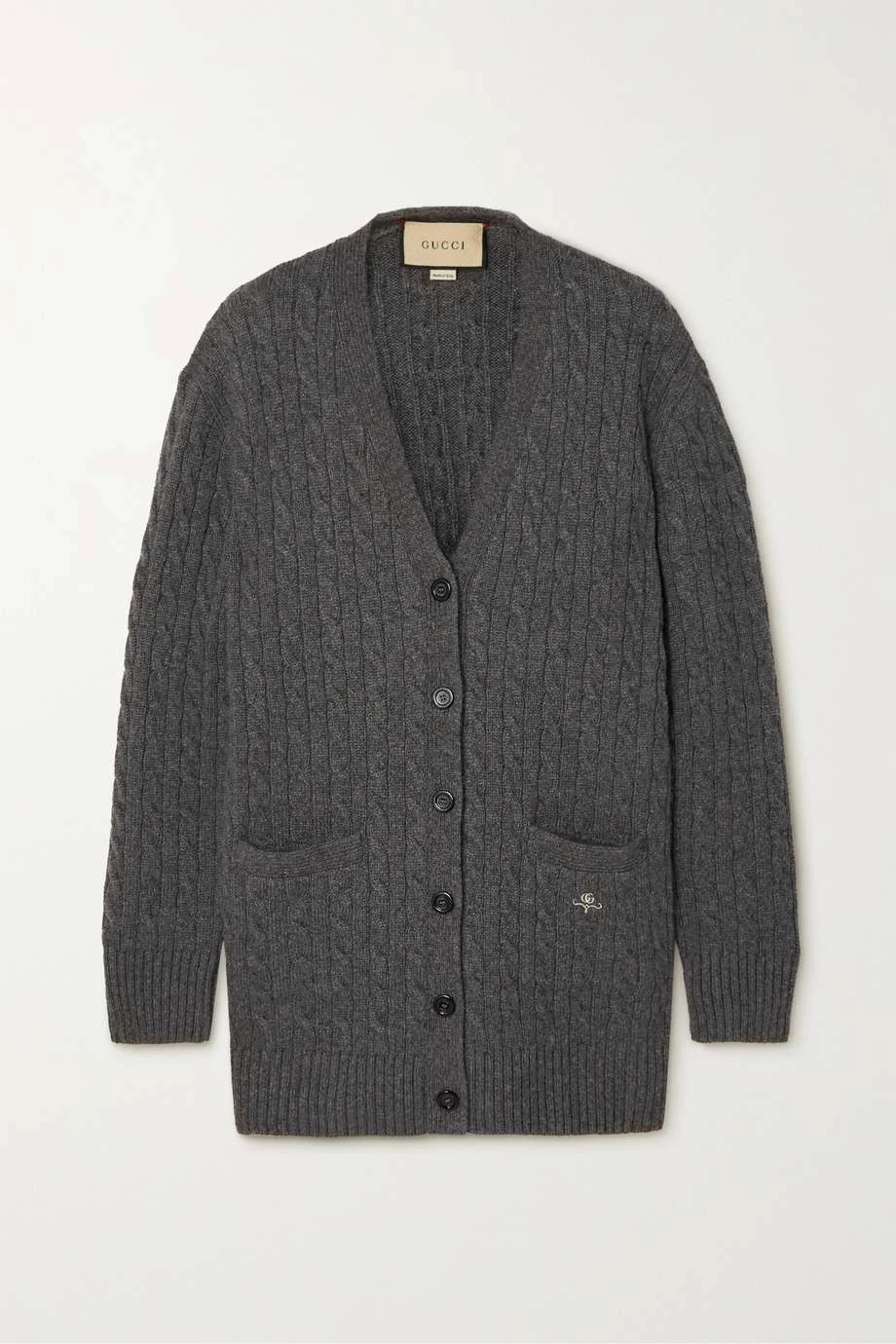Dieser Cardigan von Gucci beweist, dass der Marke schlichte Basics genauso liegen wie auffällige Statement-Modelle. Dieser Cardigan aus weichem Kaschmir in Zopfstrick zeigt sich in einem zeitlosen Grauton und ist an der Tasche ganz dezent mit dem Labellogo bestickt. Tragen Sie die passende Jogginghose und Loafers dazu.