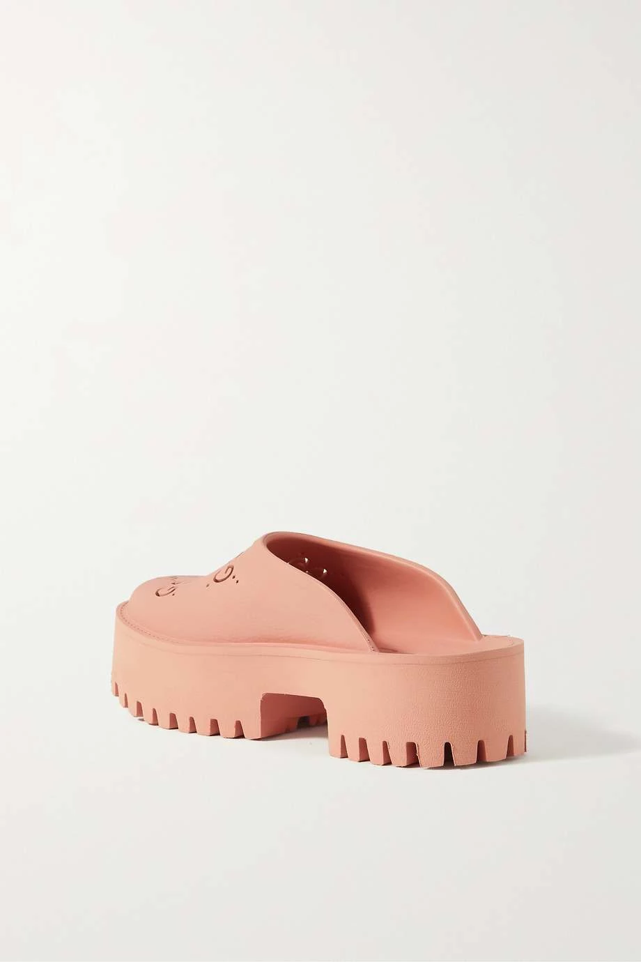 Diese Mules von Gucci zählen zu unseren besonderen Empfehlungen für den Sommer – da das Paar mit Plateau äußerst vielseitig ist, werden Sie es mit Sicherheit häufig tragen. Es besteht aus Gummi, das dank der Struktur wie Leder wirkt und sich mit Perforationen in Form des „GG“-Logos zeigt. Werfen Sie auch einen Blick auf die anderen Farben in unserer Auswahl.