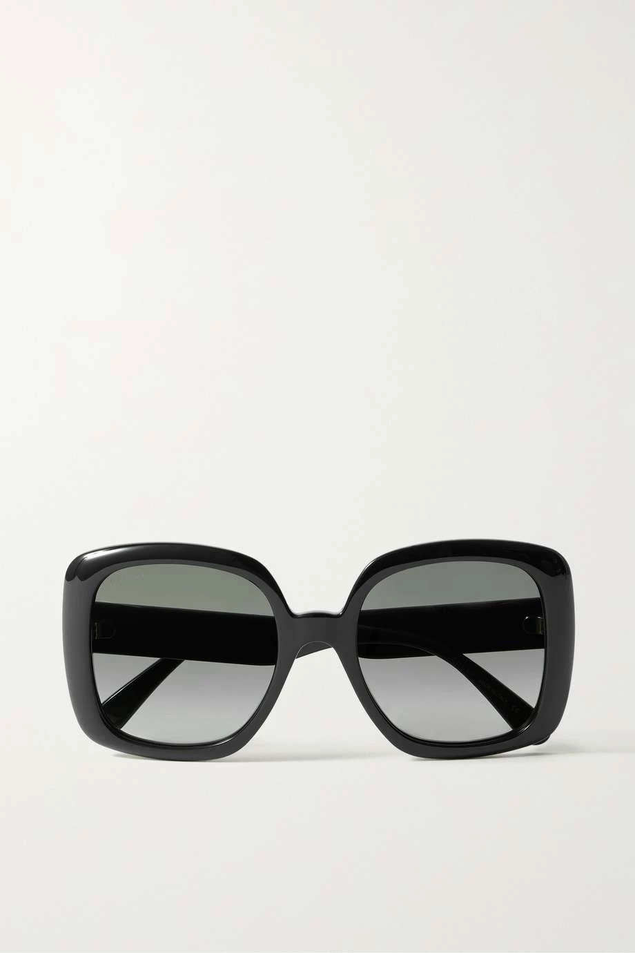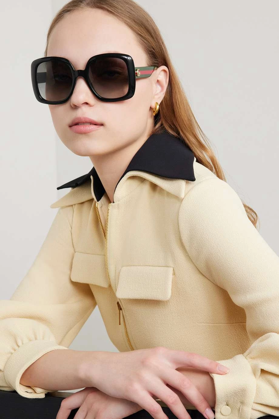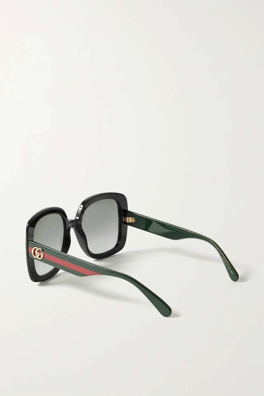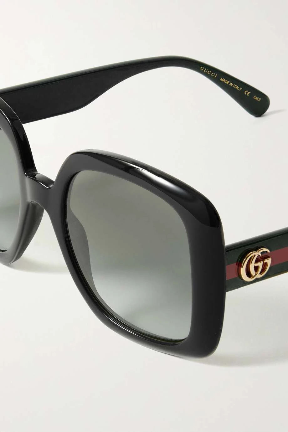 Obwohl diese Sonnenbrille auf den ersten Blick recht dezent wirkt, werden Sie die Webbänder an den Bügeln sofort als Markenzeichen von Gucci erkennen. Das in Italien gefertigte Oversized-Accessoire mit eckigem Rahmen besteht aus glänzendem Azetat und wirkt insbesondere bei ovalen Gesichtern vorteilhaft.