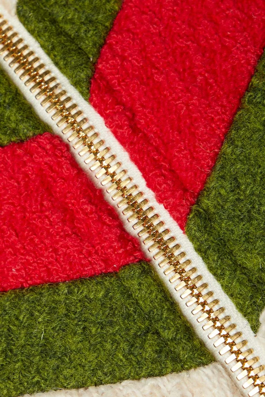 Diese Jacke von Gucci wurde mit den markentypischen Streifen gestaltet, sodass sie für Fans des Hauses sofort wiedererkennbar ist. Das leicht wattierte Modell aus schickem Bouclé aus einer Wollmischung zeigt sich im Bomberstil und mit goldfarbenen „GG“-Knöpfen. Das Satinfutter erleichtert das An- und Ablegen.