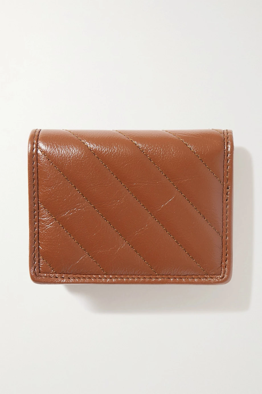 Dieses Portemonnaie von Gucci wurde mit Fächern für Kreditkarten und Münzen ausgestattet, weshalb es ideal ist, wenn Sie gerne beides dabei haben. Das in Italien gefertigte Accessoire besteht aus geschmeidigem braunem Leder mit dem ikonischen diagonalen Steppmuster und zeigt sich mit dem markentypischen „GG“-Detail.