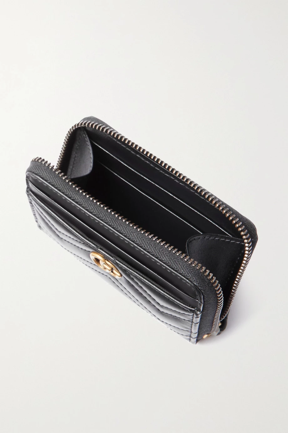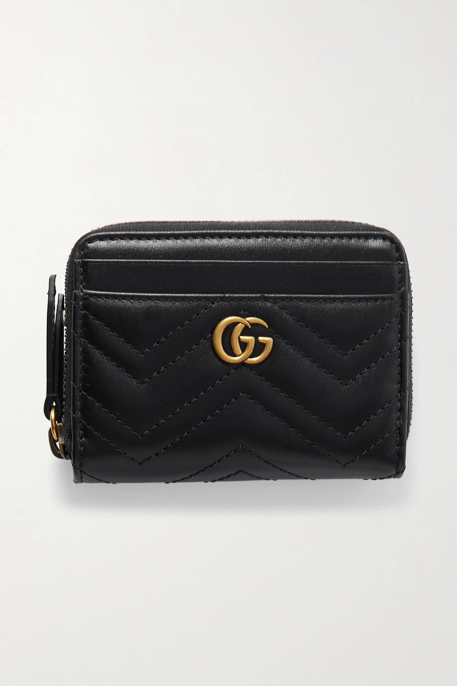 Die „Aria“ Kollektion von Gucci ist voller ikonischer Modelle, die die Marke im Laufe der vergangenen 100 Jahre kreiert hat – Teil der Reihe sind auch die „GG Marmont“ Accessoires. Dieses Portemonnaie aus gestepptem Matelassé-Leder hat einen Reißverschluss über drei Seiten und ist vorne mit einem Logodetail verziert. Es bietet Fächer für drei Karten und ein Fach für Scheine und Quittungen.