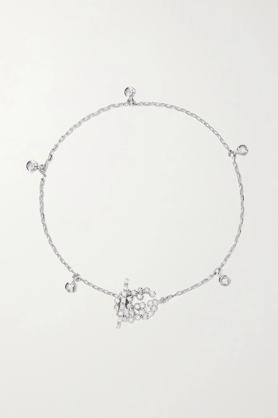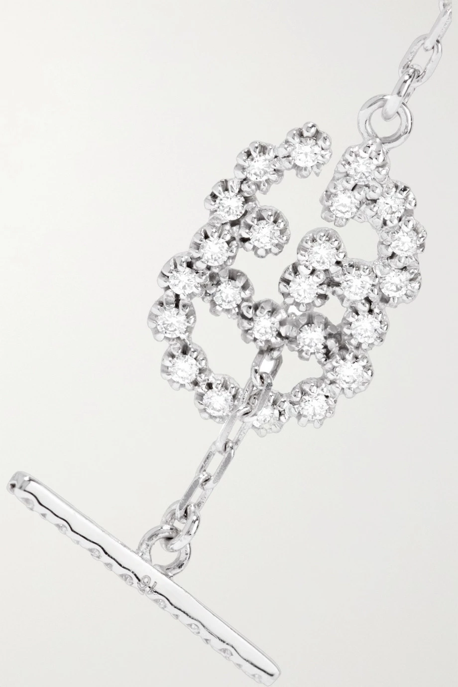 Das verschlungene „GG“-Logo von Gucci, das aus den 70er-Jahren stammt, zählt zu den ikonischsten Symbolen des Hauses. Es vollendet auch dieses Armband, das in Italien aus glänzendem 18-karätigem Weißgold gefertigt und mit funkelnden Diamanten von insgesamt 0,20 Karat verziert wurde. Machen Sie das schlichte Accessoire zu Ihrem täglichen Begleiter.