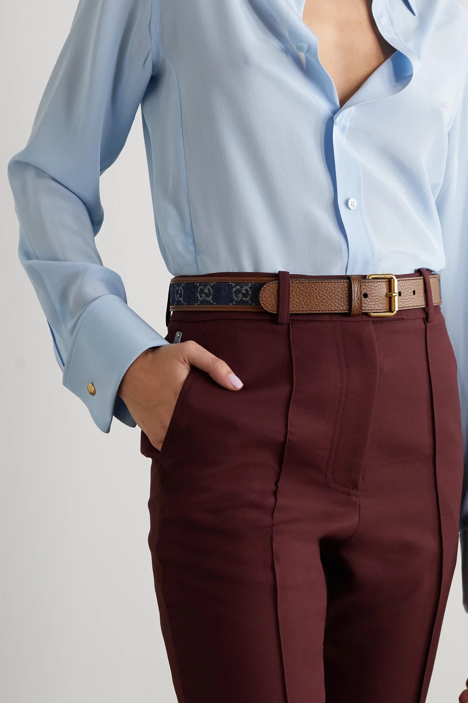 Der Prairie-Trend der H/W 21-Saison zeigt sich auf viele verschiedene Weisen, wobei uns die Umsetzung von Gucci in Form dieses Gürtels besonders gut gefällt. Das Accessoire wurde in Italien aus Denim mit dem „GG“-Logo der Marke sowie geschmeidigem braunem Leder gefertigt. Stimmen Sie Ihren Schmuck auf die goldfarbene Schnalle ab.