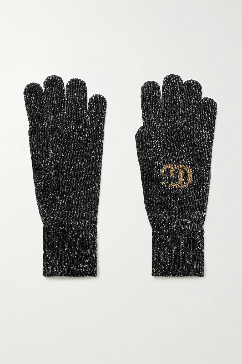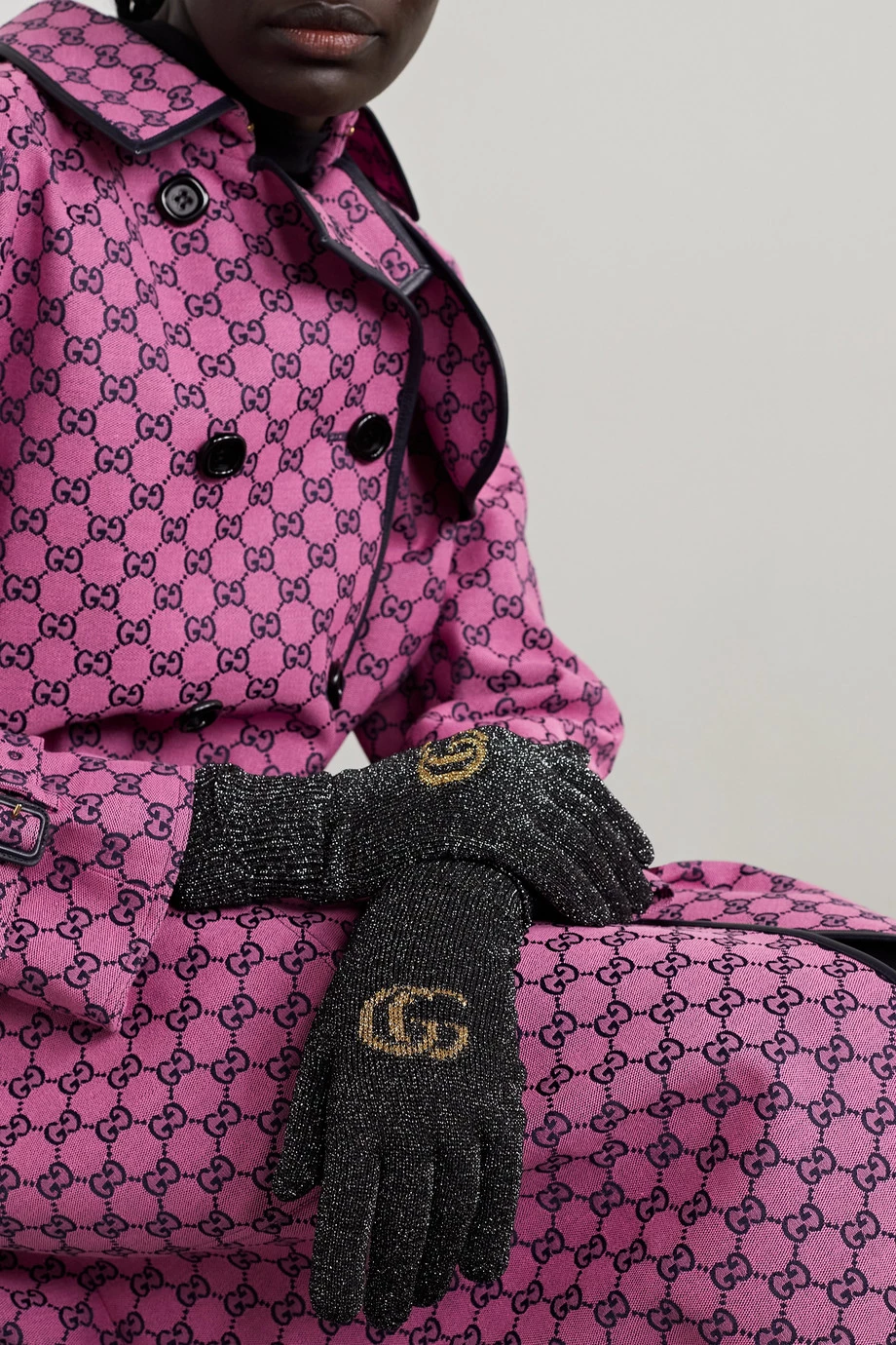 Diese Handschuhe von Gucci bestehen aus Metallic-Intarsienstrick, der das „GG“-Logo aus den 70er-Jahren des Hauses zeigt. Das gerippte Modell liegt eng an und ist mit weichem, warmem Kaschmir gefüttert.