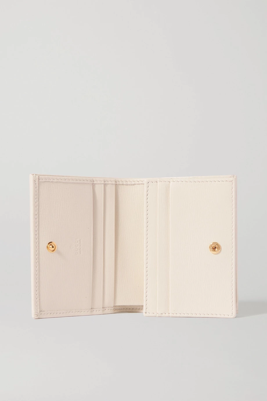 Dieses kleine Portemonnaie von Gucci wurde in Italien aus beschichtetem Canvas mit Logomuster gefertigt und mit dem markentypischen „Horsebit 1955“-Detail gestaltet. Es hat sechs Kartenschlitze und ein Reißverschlussfach für Münzen und Quittungen. Zudem schützen die Lederbesätze vor Schäden, damit das Accessoire viele Jahre lang hält.