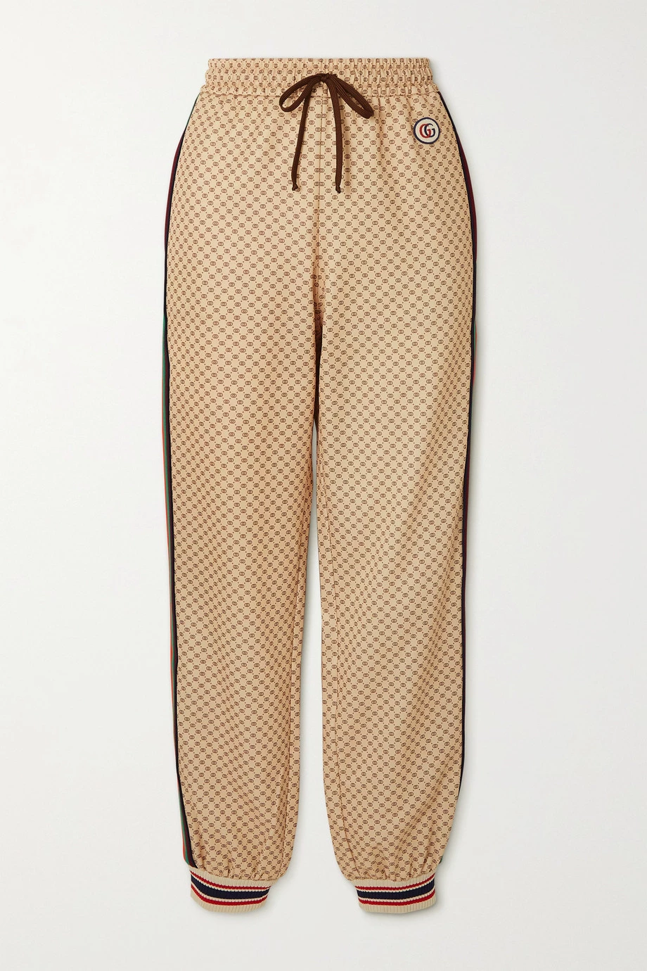 Diese Jogginghose von Gucci lässt keine Zweifel daran, dass Alessandro Michele eine Vorliebe für Monogramme hat. Das in Italien gefertigte Modell besteht aus technischem Jersey mit „GG“-Print, der sich überaus geschmeidig anfühlt, und ist am Bein mit dem markentypischen gestreiften Webband verziert. Die Logoapplikation an der Hüfte verströmt Retro-Flair.