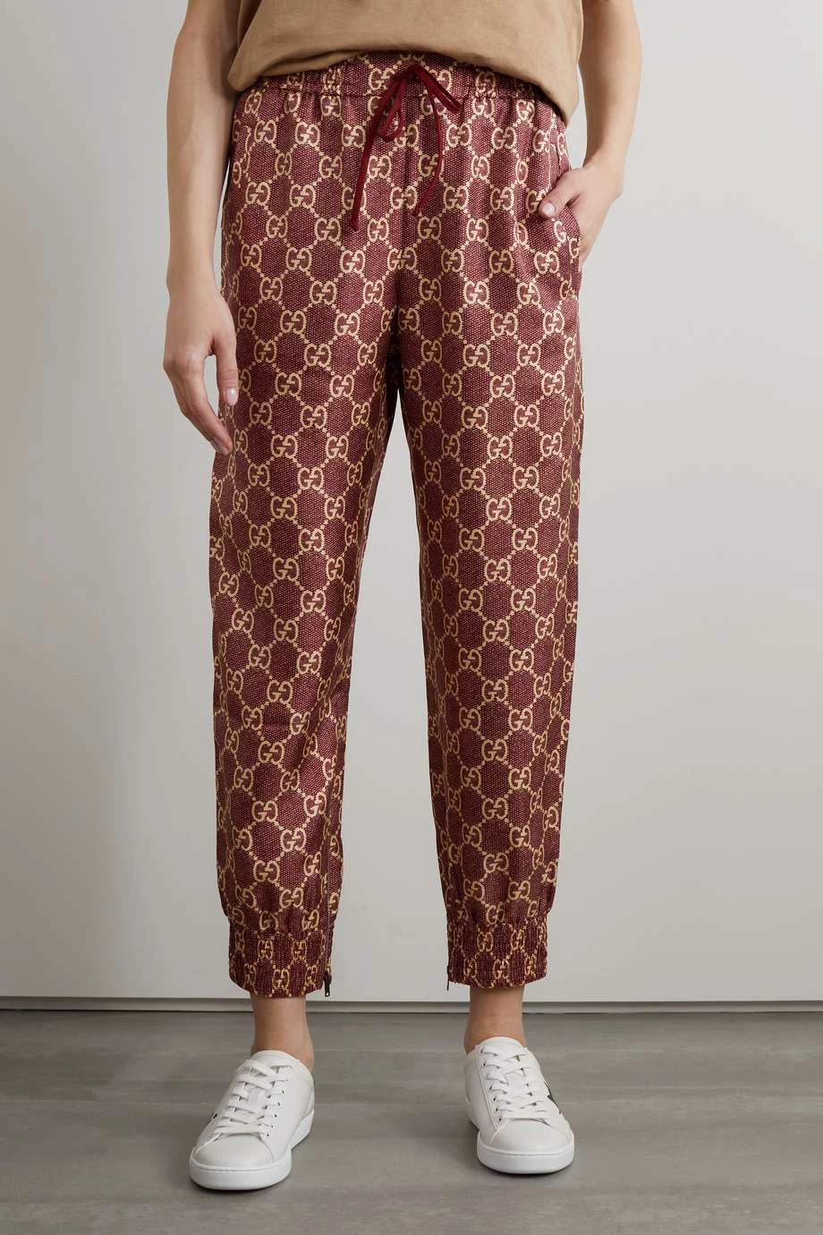 Auch der Loungewear von Gucci können wir nicht widerstehen. Diese Jogginghose aus Seiden-Twill zeigt sich mit seitlichen Lamé-Streifen in Rot, Grün und Gold sowie dem charakteristischen „Supreme“-Print. Kombinieren Sie sie mit einem Ihrer Lieblings-T-Shirts oder einem Sweatshirt der Marke.