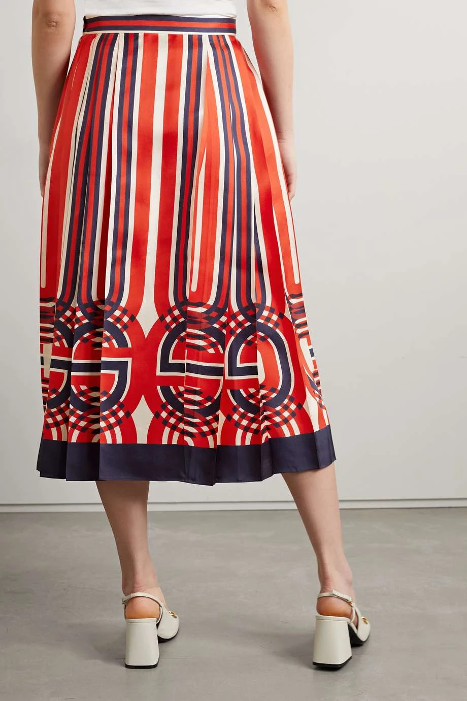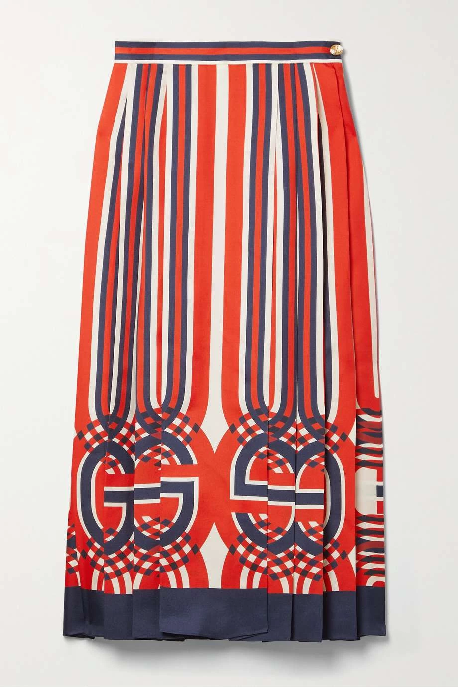Für diesen Rock mit Falten hat sich Gucci von abstrakter Kunst inspirieren lassen: Das ikonische Logo der Marke ist hier Teil eines Musters, das eine interessante Tiefe hat. Das hoch sitzende Modell wurde in Italien aus glänzendem Seiden-Twill gefertigt. Dazu passt ein Sweatshirt der Marke in den gleichen Farben.