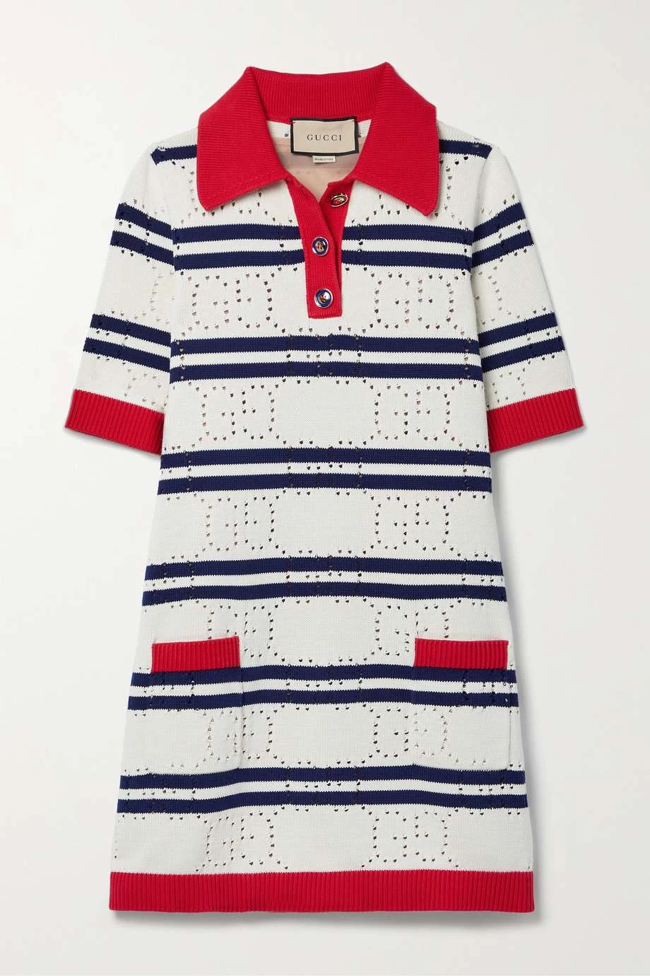 GUCCI Love Parade Gestreiftes Minikleid Aus Baumwolle In Pointelle-Strick ,Creme