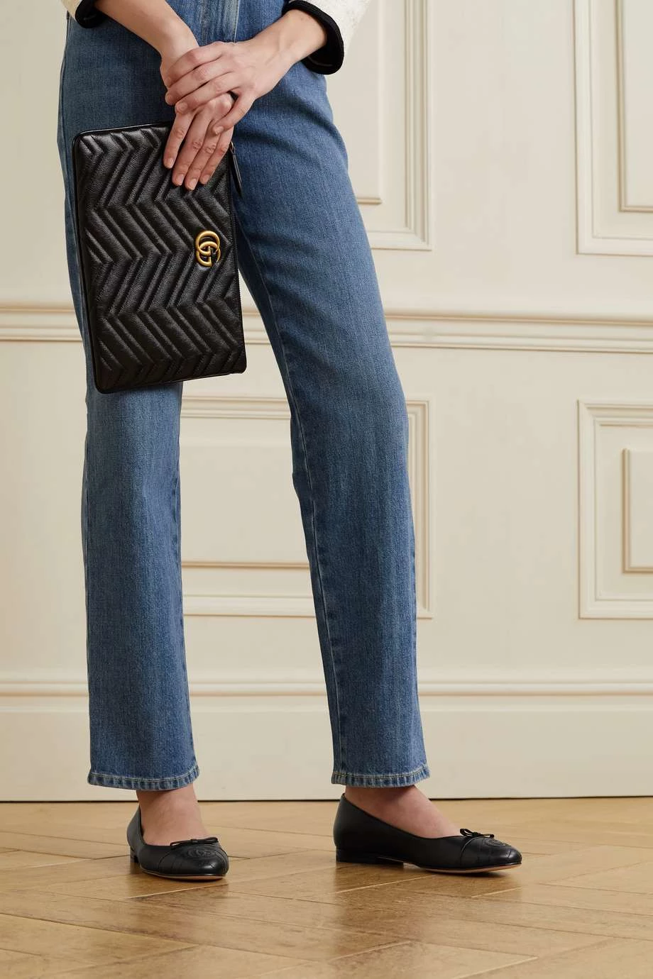 Die schlichten „Marmont“ Ballerinas von Gucci bestehen aus Glattleder, das an der Kappe gesteppt ist, und wurden neben einer „GG“-Stickerei auch mit einer Schleife verziert. Das in Italien gefertigte Paar mit flachem Absatz ist der perfekte Kombinationspartner für klassische Outfits.