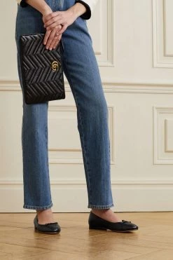 Diese Mules entstammen der beliebten „Marmont“ Reihe von Gucci und wurden wie die berühmten Taschen des Hauses aus gestepptem Leder gefertigt. Das Paar ist am breiten Riemen mit dem „GG“-Logodetail der Marke verziert und zeichnet sich durch einen skulpturalen Kitten-Heel aus. Es passt genauso gut zu smarten Hosen wie Cocktailkleidern.