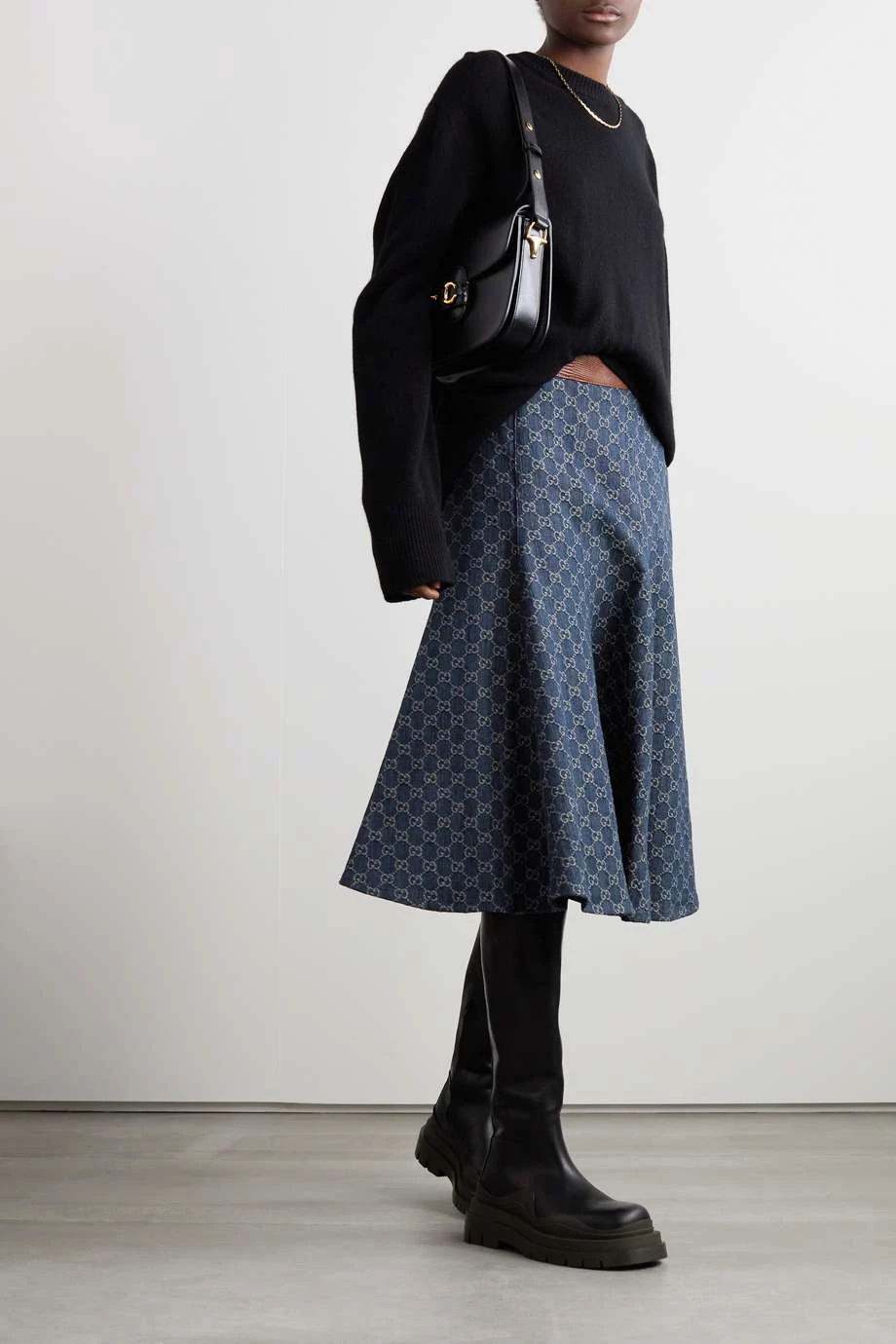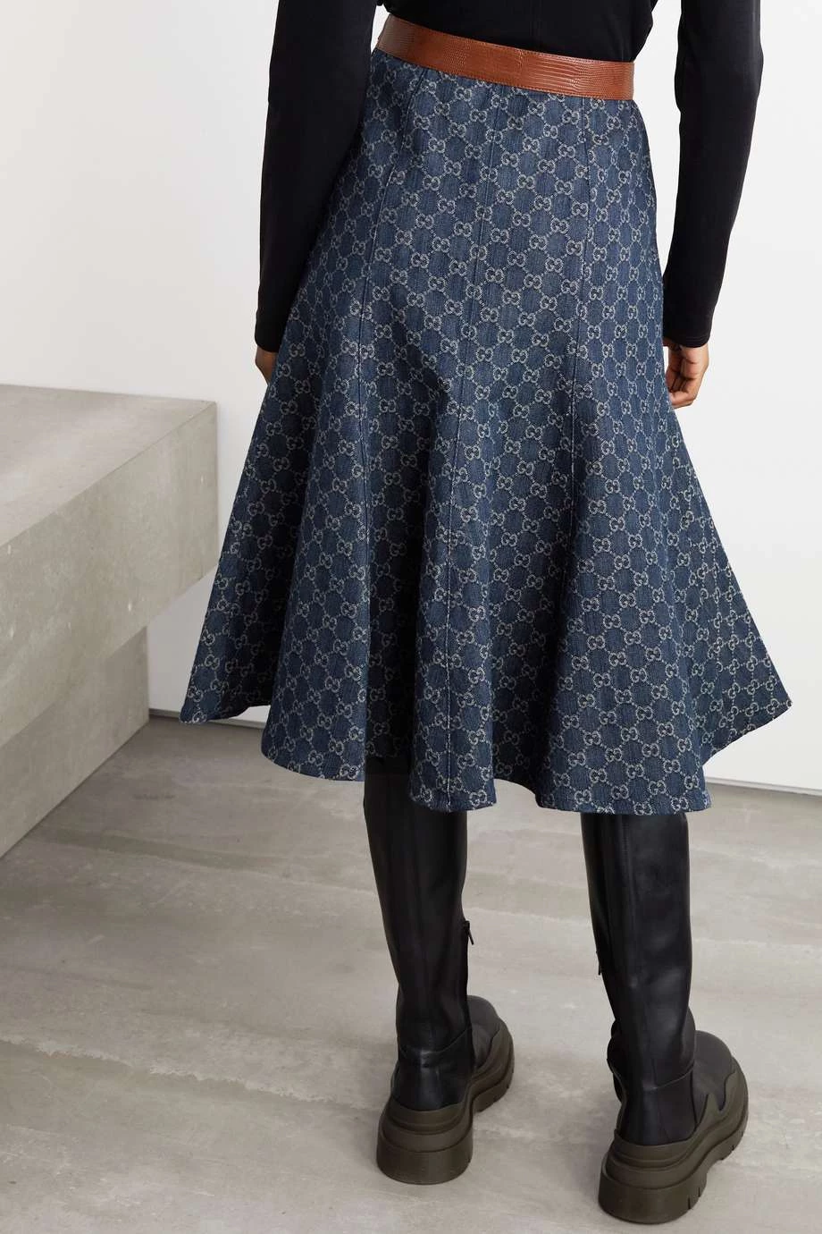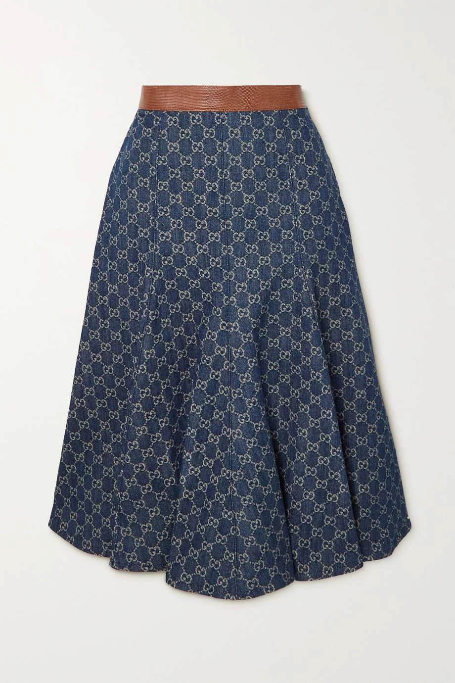 GUCCI Midirock Aus Bio-Denim Mit Jacquard-Muster Und Besatz Aus Leder Mit Eidechseneffekt ,Blau