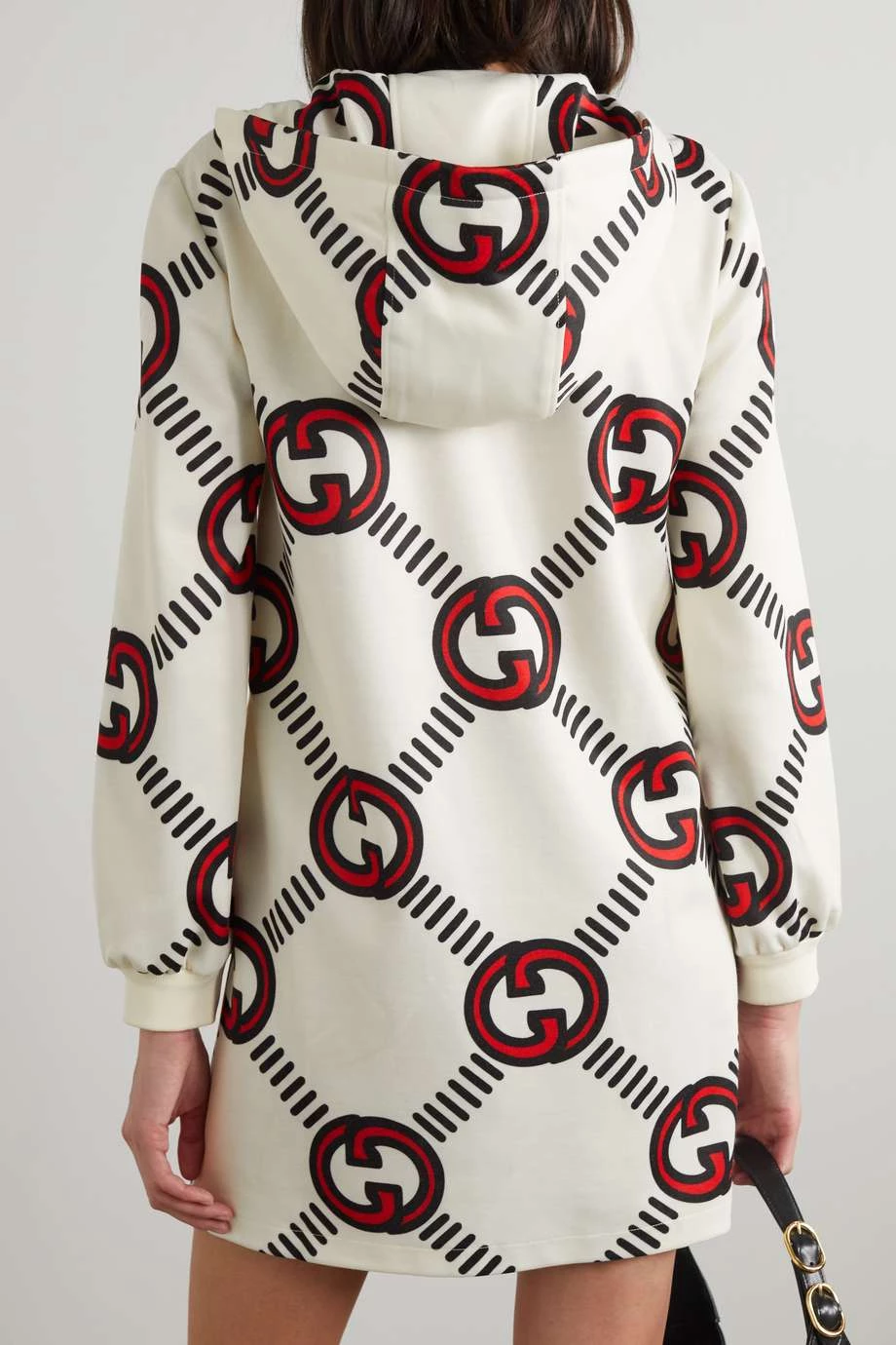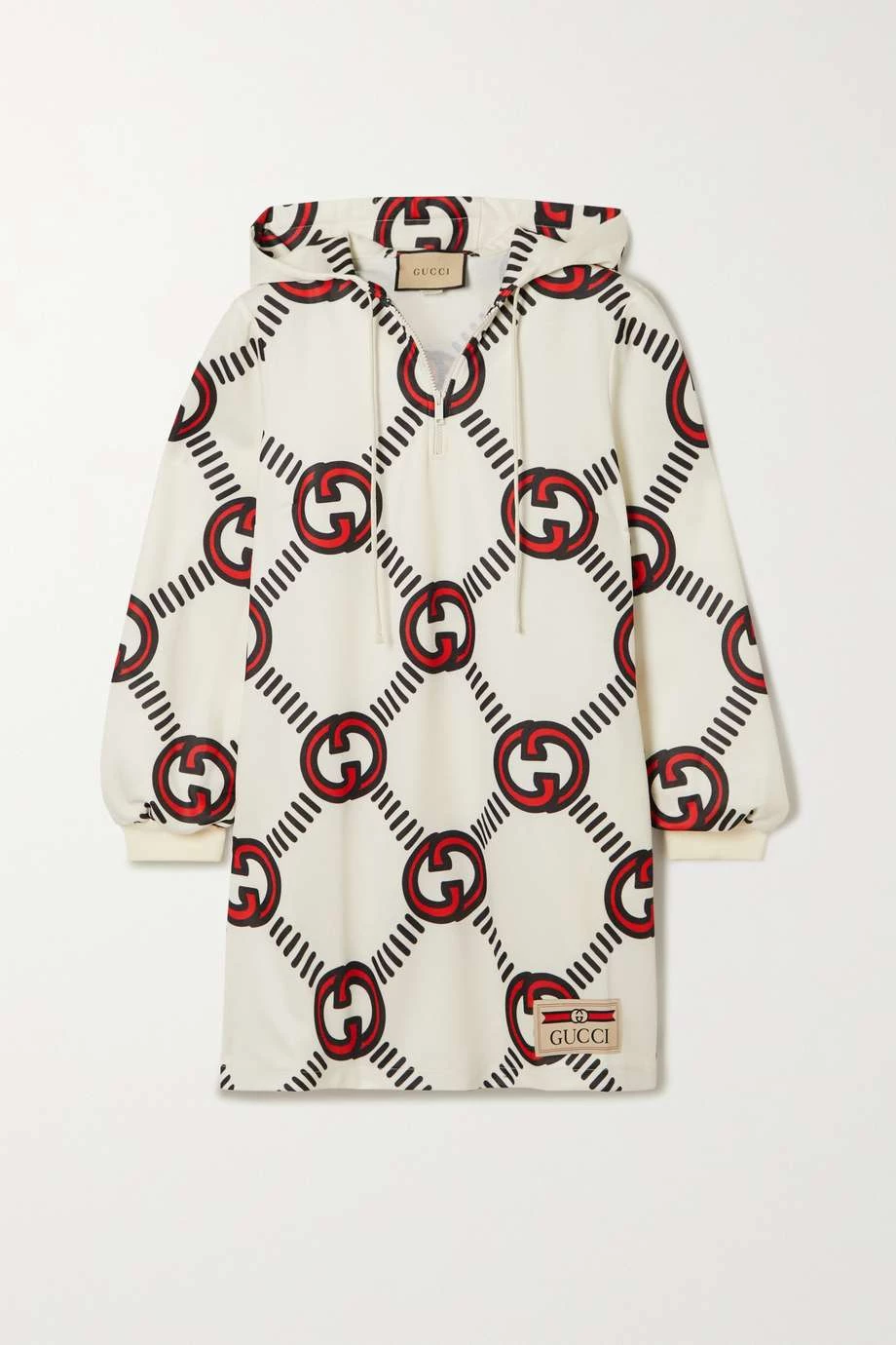 Dieses Minikleid lässt dank des großen „GG“-Logomusters keinen Zweifel daran, dass es aus dem Hause Gucci stammt. Es wurde aus weichem Jersey mit einem hohen Anteil an luftiger Baumwolle gefertigt und hat eine beachtliche Kapuze.