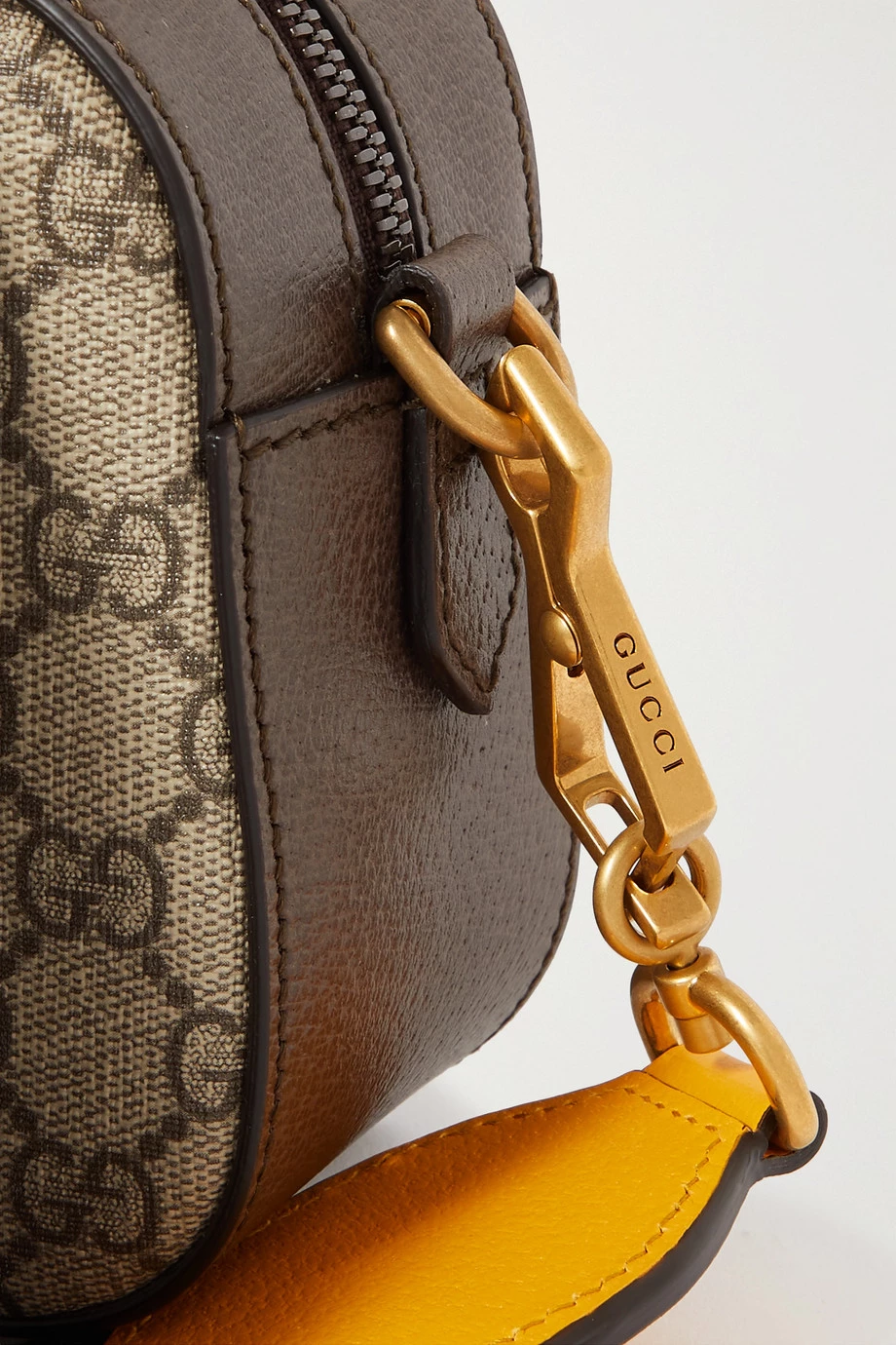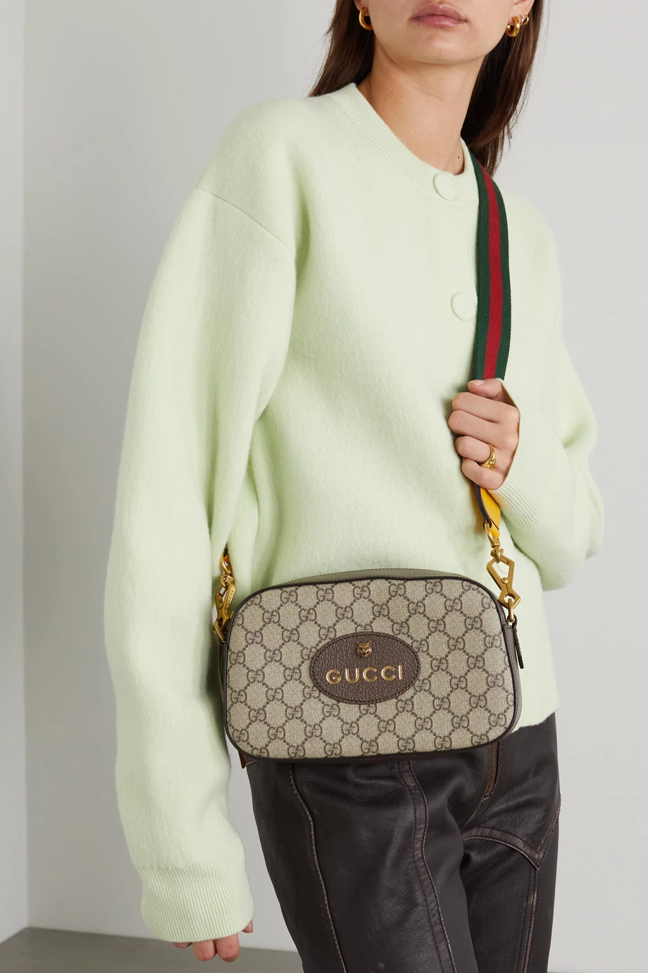 Die „Neo Vintage GG Supreme“ Tasche von Gucci wurde in Italien aus dem ikonischen beschichteten Canvas und strukturiertem Leder gefertigt. Das dezent formschöne Accessoire zeigt sich mit einem eingewebten Logomuster und Details aus Messing. Nehmen Sie den Webbandriemen ab, wenn Sie es als Clutch tragen möchten.