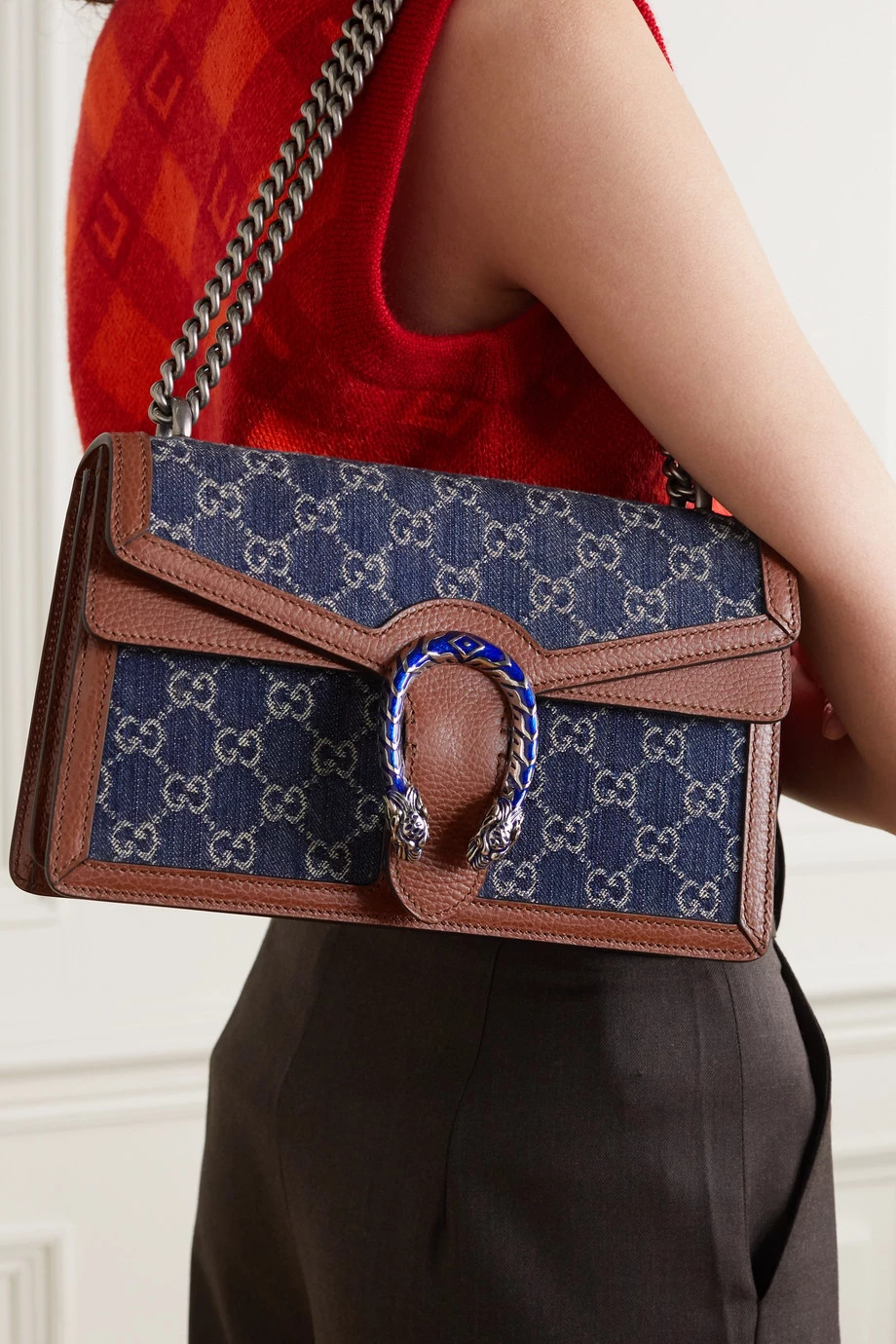 Die „Dionysus“ Schultertasche von Gucci fällt nicht nur aufgrund des Bio-Denims in unsere Kategorie NET SUSTAIN: Das braune Leder wurde chromfrei gegerbt, wodurch umliegende Gewässer weniger belastet werden und die Personen, die das Material handhaben, nicht gefährdet sind. Obschon das Accessoire kompakt ausfällt, bietet es dank der seitlichen Falten überraschend viel Platz. Den Abschluss bildet ein farbenkräftiger Verschluss.
