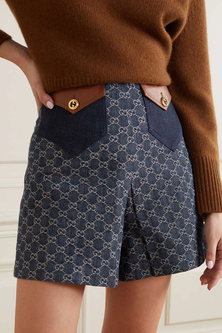 Diese Shorts von Gucci bestehen aus Bio-Denim, der mit umweltfreundlichen Methoden, bei denen weniger Wasser verbraucht wird, ohne schädliche Chemikalien gewaschen wurde – zudem werden die Textilreste für die Fertigung anderer Kleidungsstücke verwendet. Das Modell hat ein Jacquard-Muster, das sich aus dem „GG“-Logo des Hauses zusammensetzt, wobei jenes auch an den goldglänzenden Knöpfen der mit Leder besetzten Taschen an der Vorderseite zu sehen ist. Stecken Sie ein Oberteil in den Bund und tragen Sie die passende Jacke dazu.