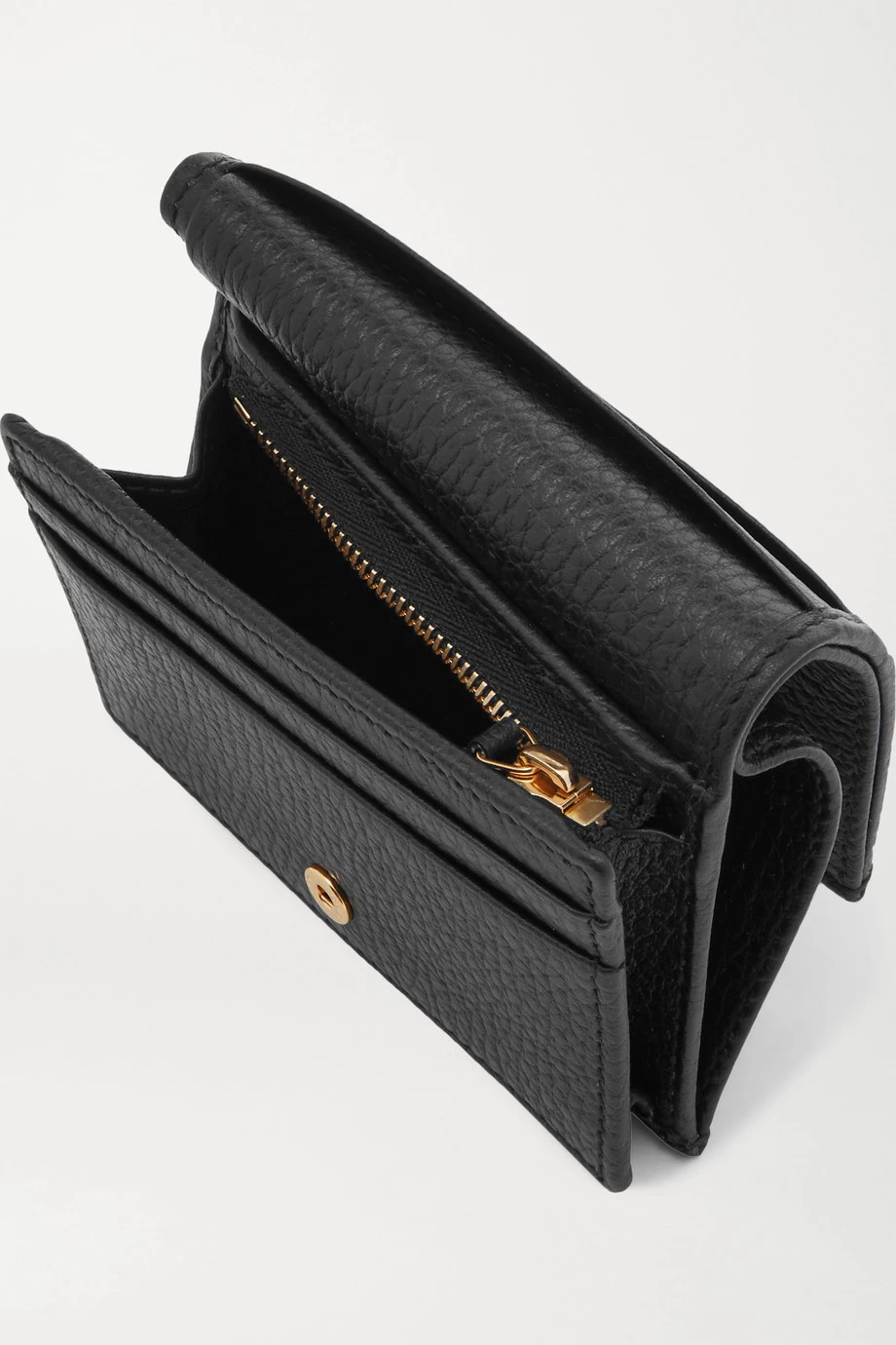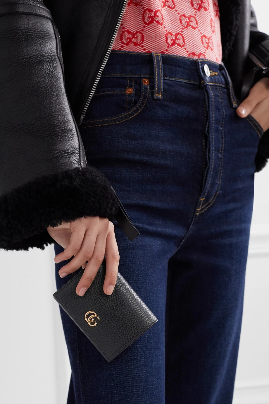 Diesem Portemonnaie aus chromfrei gegerbtem strukturiertem Leder von Gucci kann eine häufige Benutzung nichts anhaben. Das Modell mit goldfarbenem Logodetail hat fünf Kartenschlitze und ein Reißverschlussfach für Kleingeld.