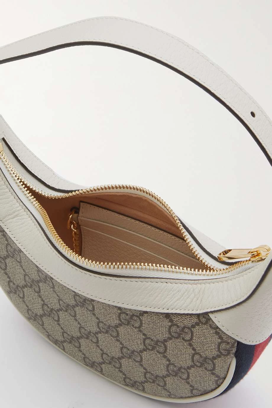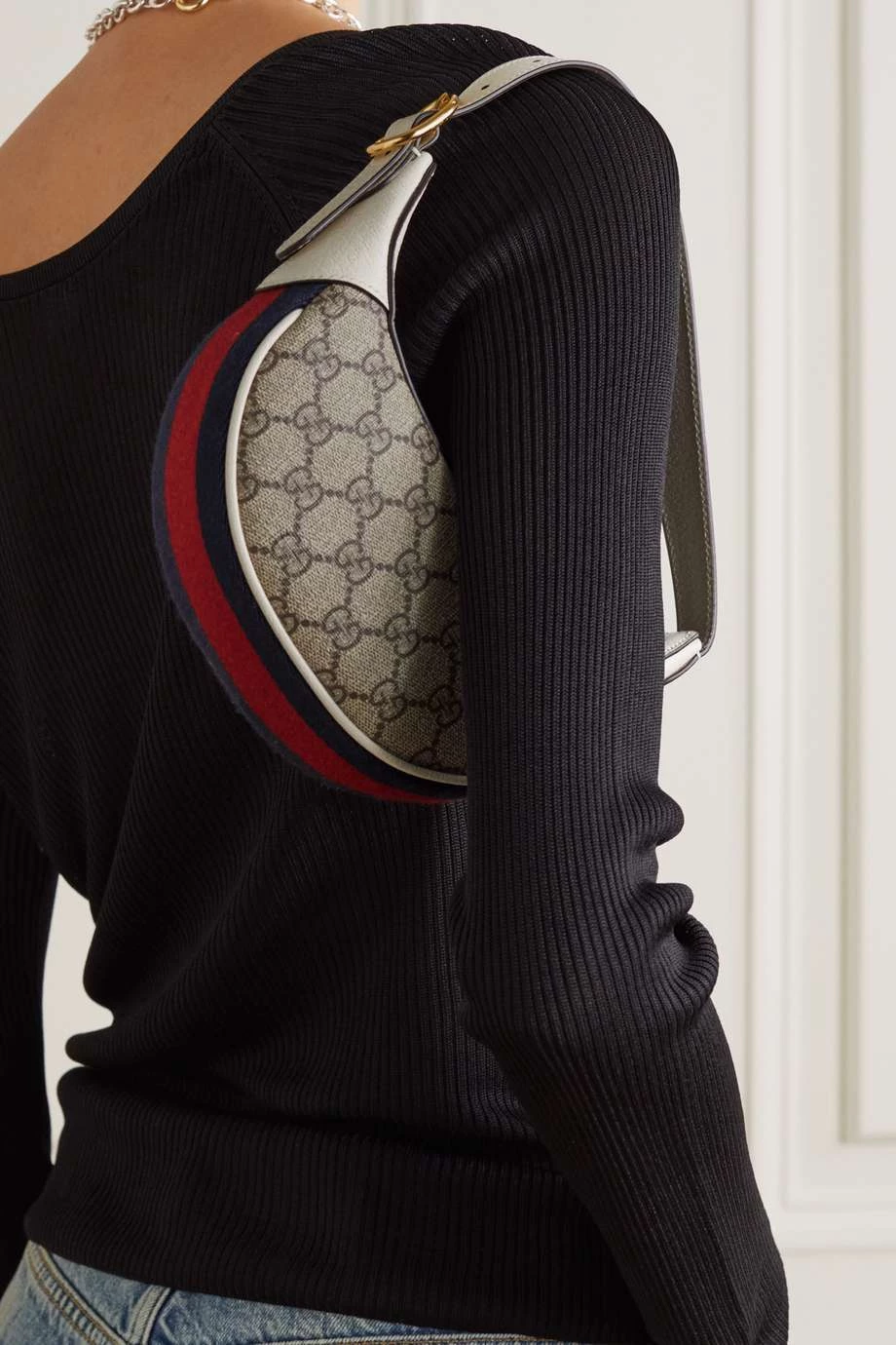 Die „Ophidia“ Tasche ist sofort als Modell von Gucci zu erkennen: Neben dem charakteristischen bedruckten Canvas des Hauses zeichnet sie sich auch durch einen Webstreifenbesatz und goldfarbene „GG“-Details aus. Das Accessoire wurde im italienischen Atelier der Marke gefertigt und mit einem breiten, gürtelähnlichen Henkel gestaltet, der sich verstellen lässt. Es bietet ausreichend Platz für Ihr Smartphone sowie kleinere Essentials und hat innen zwei Kartenschlitze.