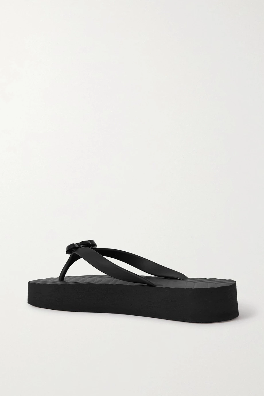 Die geprägte Innensohle der „Pascar“ Zehensandalen von Gucci erinnert an das zickzackförmige Steppmuster, das man von den „GG Marmont“ Taschen der Marke kennt. Das Paar aus Gummi wirkt aufgrund des Plateaus wie ein 90er-Jahre-Modell und hat eine Logoverzierung in Form der Initialen des Hauses, die aus glänzendem schwarzem Harz besteht. Es passt sowohl zu abgeschnittenen Jeansshorts als auch zu Midikleidern.