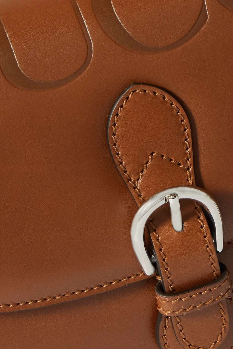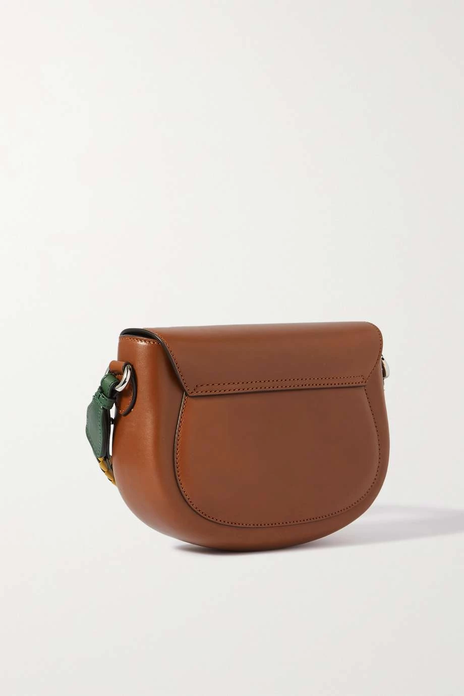 Inspiration für die F/S 22-Kollektion von Gucci fand Alessandro Michele in der 100-jährigen Geschichte des Hauses – diese Tasche beispielsweise greift die frühen Bezüge zum Reitsportstil auf. Das klassische Sattelmodell wurde aus Leder gefertigt, mit dem Markennamen geprägt und mit einem farbenfrohen geflochtenen Schulterriemen ausgestattet.