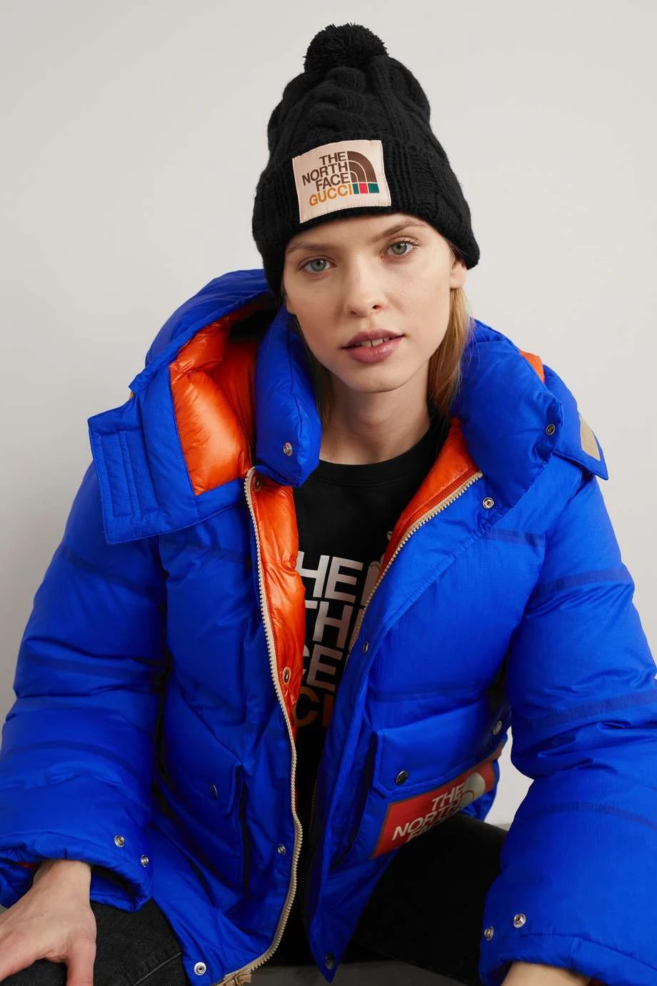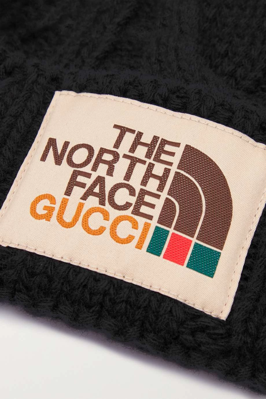 Diese Beanie entstammt einer Zusammenarbeit von Gucci und The North Face und ist dementsprechend funktionell sowie kuschelig. Das Accessoire mit flauschigem Pompon wurde in Italien aus wärmender Wolle in Zopfstrick gefertigt und am umgeschlagenen Abschluss mit einem Aufnäher gestaltet, auf dem das gemeinsame Logo der Marken zu sehen ist.