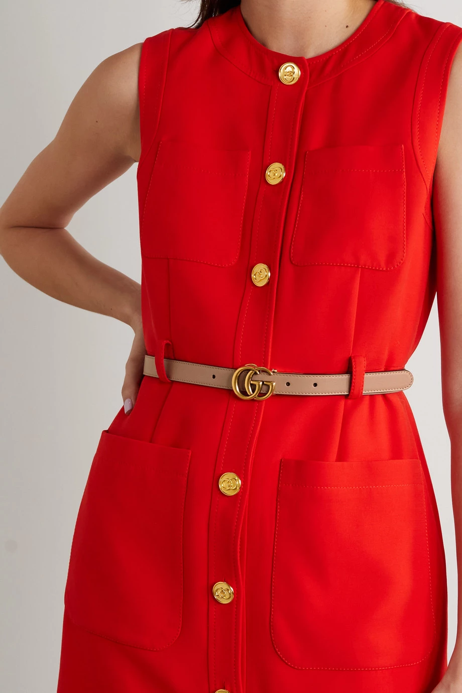 Je nach Outfit können Sie diesen wendbaren Gürtel von Gucci entweder auf der schwarzen oder der altrosafarbenen Seite tragen. Er wurde aus geschmeidigem Leder gefertigt und mit dem „GG“-Logodetail verziert.