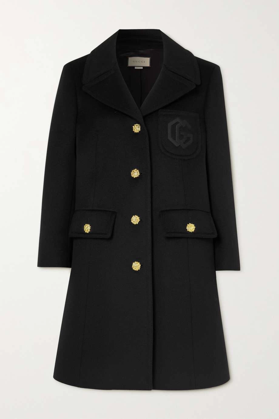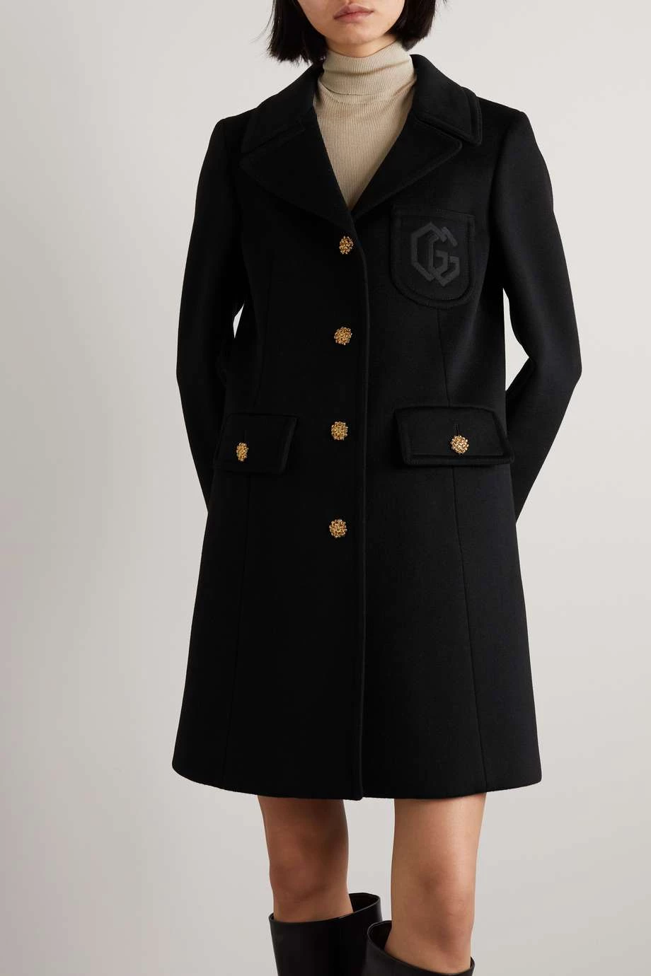 Die Kollektionen von Alessandro Michele für Gucci sind reich an Klassikern wie diesem eleganten schwarzen Mantel, an dem Sie lange Freude haben werden. Der warme Einreiher aus schwerer Wolle ist mit dem „GG“-Emblem bestickt und wurde mit goldglänzenden Knöpfen im Vintage-Stil gestaltet.