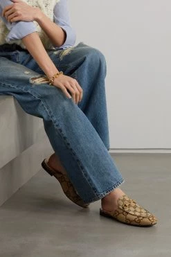 GUCCI Princetown Slippers Aus Canvas Mit Jacquard-Muster, Lederbesatz Und Horsebit-Detail ,Beige