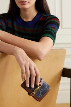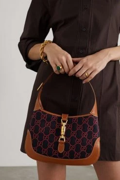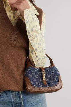 GUCCI Jackie 1961 Mini Schultertasche Aus Bio-Denim Mit Jacquard-Muster Und Lederbesätzen ,Blau