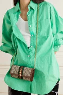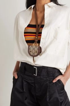 GUCCI Horsebit 1955 Bedruckte Schultertasche Aus Beschichtetem Canvas Mit LederbesÀtzen ,Braun