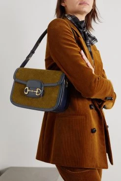 GUCCI Horsebit 1955 Schultertasche Aus Cord Mit LederbesÀtzen ,Braun