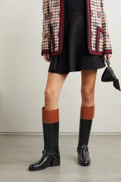 GUCCI Zelda Zweifarbige Kniehohe Stiefel Aus Leder ,Schwarz