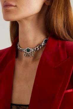 GUCCI Jackie Mini Schultertasche Aus Metallic-Leder Mit Verzierung ,Silber