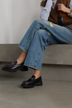 GUCCI Brixton Loafers Aus Leder Mit Webband, Horsebit-Detail Und Einklappbarer Fersenpartie ,Schwarz