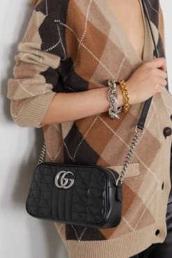 GUCCI GG Marmont Camera Kleine Schultertasche Aus Gestepptem Leder ,Schwarz