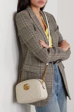 GUCCI GG Marmont Camera Kleine Schultertasche Aus Gestepptem Leder ,Weiß