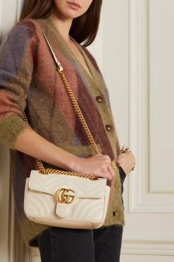 GUCCI GG Marmont Mini Schultertasche Aus Gestepptem Leder ,Braun