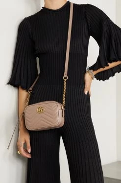 GUCCI GG Marmont Camera Mini Schultertasche Aus Gestepptem Leder ,Altrosa