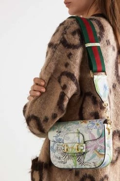 GUCCI Horsebit 1955 Mini Schultertasche Aus Bedrucktem Leder ,Weiß