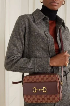 GUCCI Horsebit 1955 Kleine Schultertasche Aus Canvas Mit Lederbesätzen ,Burgunder