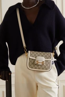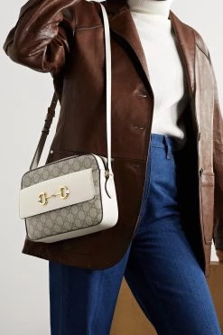 GUCCI Horsebit 1955 Kleine Bedruckte Schultertasche Aus Beschichtetem Canvas Mit Lederbesätzen ,Weiß