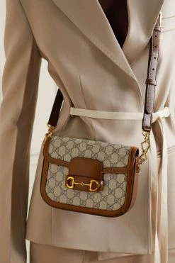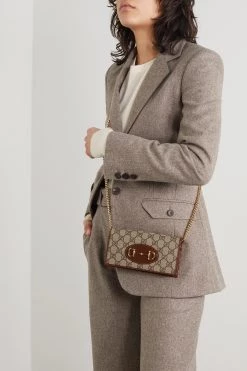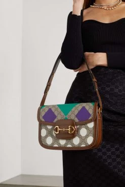 GUCCI Horsebit 1955 Schultertasche Aus Bedrucktem Beschichtetem Canvas Mit Lederbesätzen ,Braun